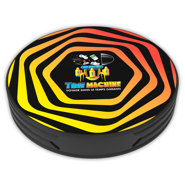 Branchez le câble d’alimentation sur une prise électrique et appuyez sur le bouton POWER (ON -OFF) situé sur le câble d’alimentation afin d’allumer votre console Time Machine.